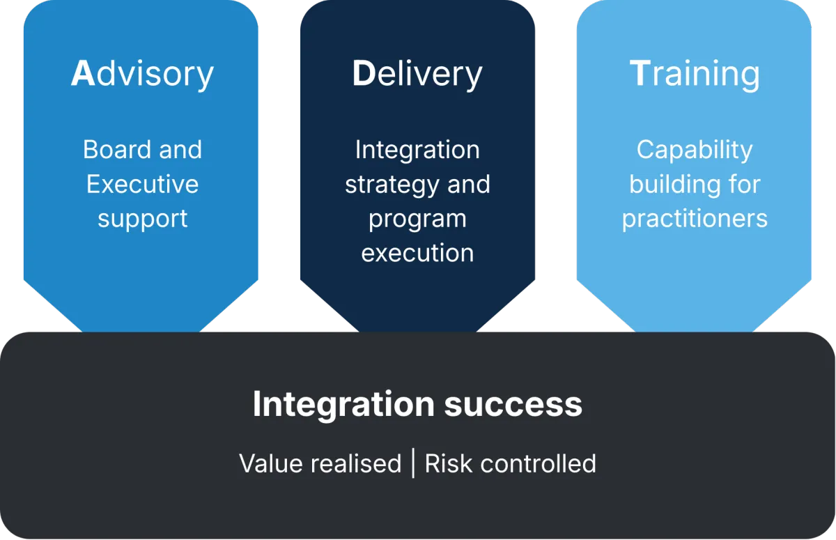 Advisory - Board and Executive-level guidance to de-risk integration decisions, manage complexity and maintain strategic focus.